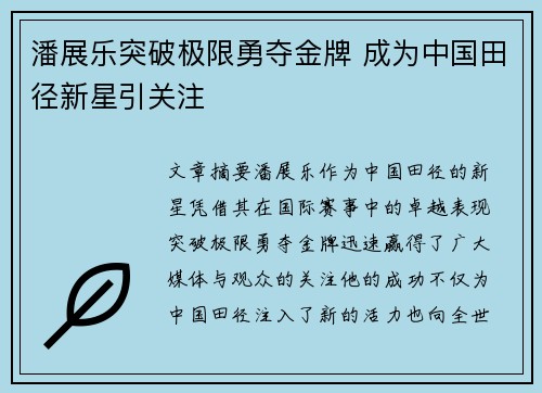 在刚刚落幕的田径世锦赛中,中国选手们表现亮眼,不仅在多个项目中取得了优异成绩,还刷新了多项纪录,展示了中国田径的强大实力。无论是在赛道上的激烈角逐,还是在投掷与跳跃项目中的不懈拼搏,中国运动员的精彩表现令人赞叹。本文将从四个方面详细阐述中国选手在本届田径世锦赛中的出色表现。首先,我们将回顾中国选手在...